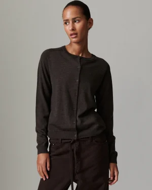 Denna tunna stickade cardigan har knappstängning och rund hals. Cardiganen har en tajt passform.
