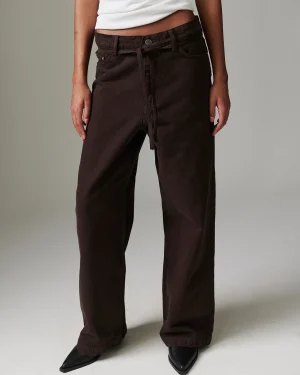 Dessa lågmidjade, vida byxor har dragkedja med knappstängning, fem fickor och ett tunt knytbälte i midjan. Byxorna har en ledig passform.