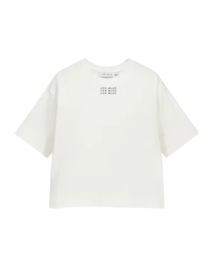 CMMUSE-TEE är en löst sittande O-ringad t-shirt tillverkad i mjuk ekologisk bomullsjersey. Designad med breda axlar och en avslappnad silhuett, har den ett litet logotyptryck på bröstet och ett lekfullt grafiskt tryck bak. Ett avslappnat men ändå elegant plagg med en iögonfallande touch.