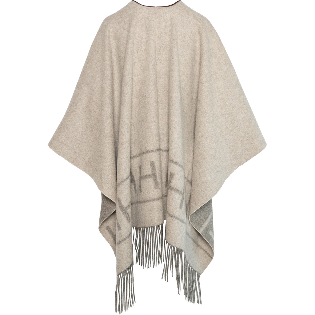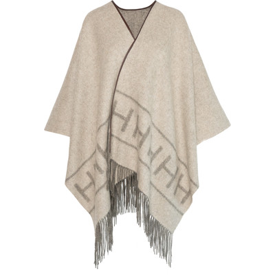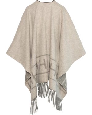 Vår ullvävda sjal är tillverkad av 100 % ren ull för en mjuk, förfinad känsla. Den är detaljerad med delikata fransar, läderkanter och H-logotypmönster över hela. Ett tidlöst statement-plagg som tillför enkel elegans till varje outfit.