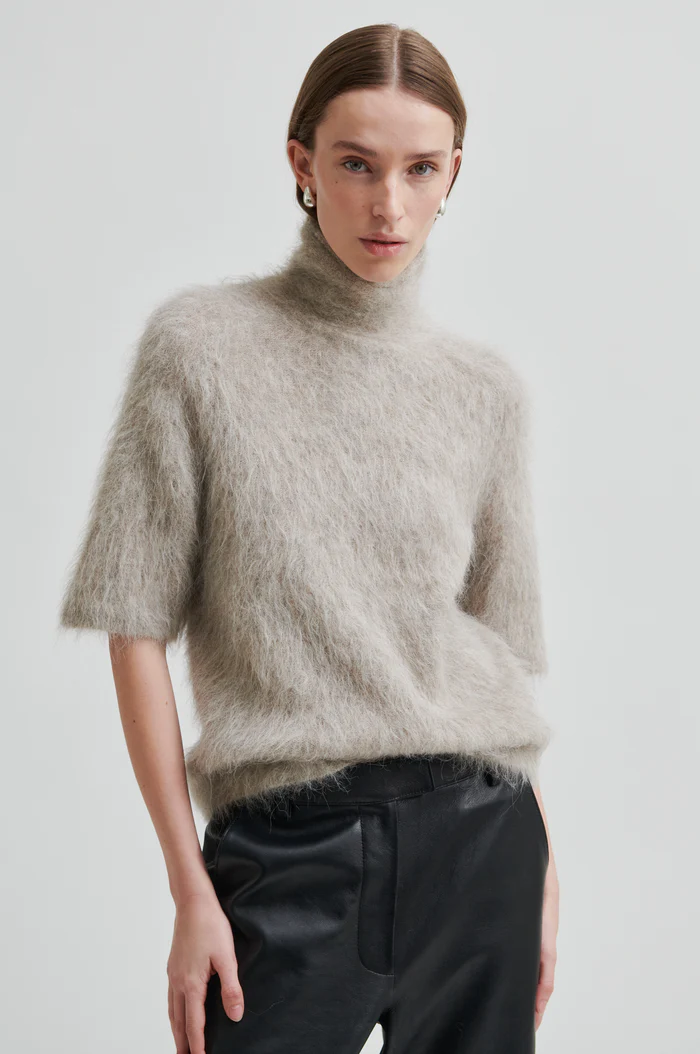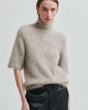 Second Female kortärmad tröja. Tröjan är gjord i en mjuk, fluffig alpaca-blandning. Den har polokrage och korta ärmar. Normal passform.