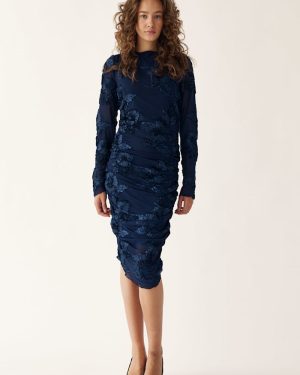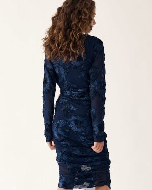 Lavinia L/S Dress är den långärmade versionen av vår populära Lavinia Dress. Tillverkad av ett stretchigt meshtyg med ett 3D-blommönster, har den smickrande sidorynkningar som framhäver din figur.