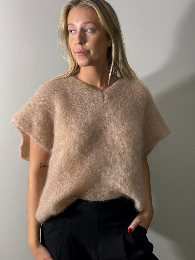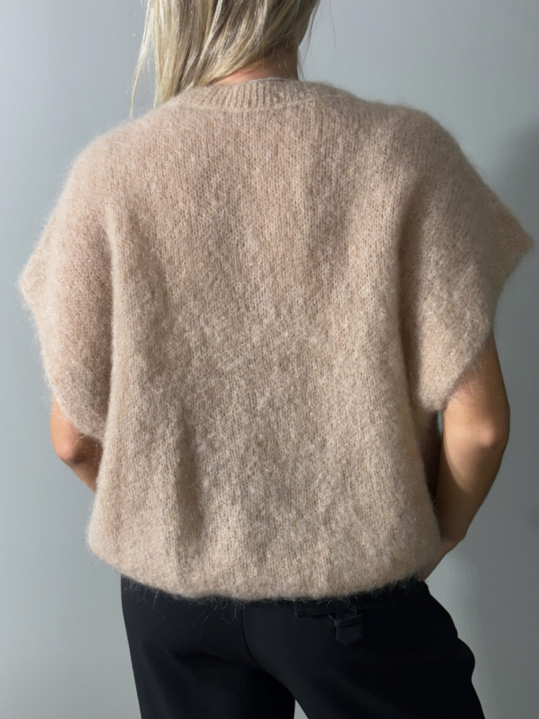 Lollo är en v-ringad stickad väst, tillverkad i 81 % kidmohair som ger en mjuk, fluffig och exklusiv känsla. Perfekt att bära över skjorta eller klänning för en tidlös och elegant lager-på-lager-look, men fungerar lika bra att bära som den är.