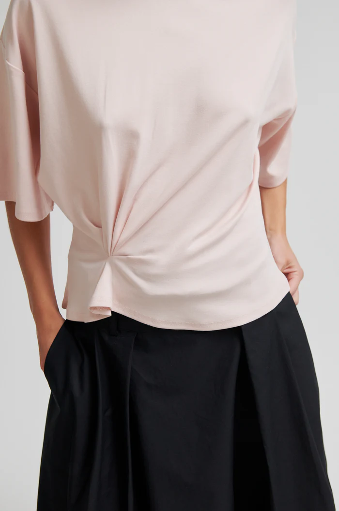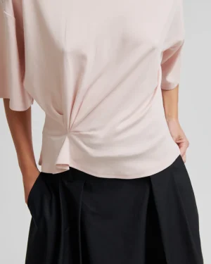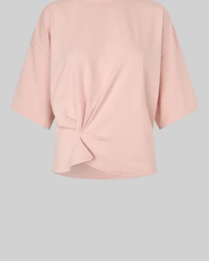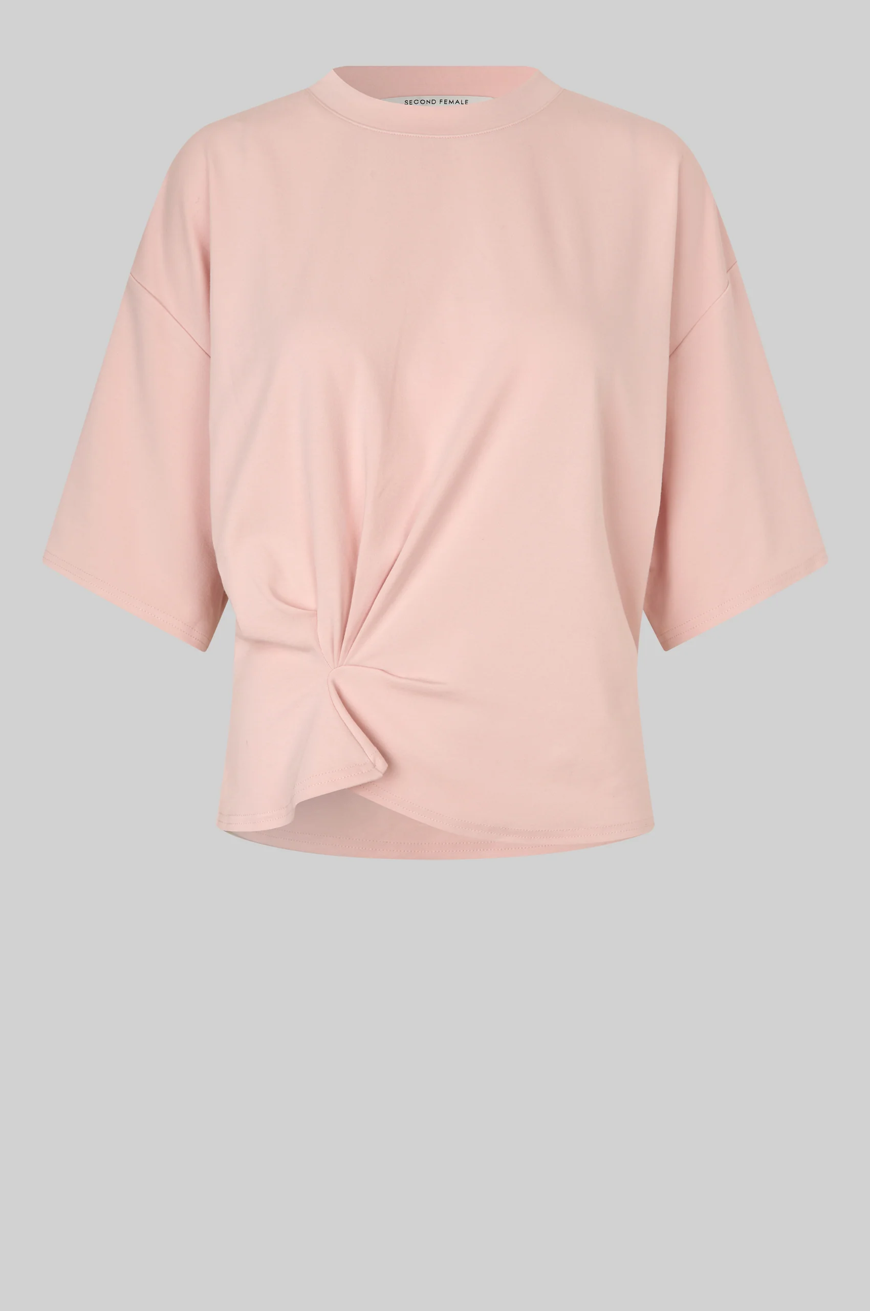 Kortärmad t-shirt med rynkning från Second Female. T-shirten är tillverkad i en mjuk, stretchig lyocell- och bomullsblandning. Rund halsringning och nedsänkta axlar. Rynkade detaljer framtill för en draperad effekt. Avslappnad passform upptill med mer åtsittande midja.