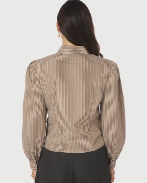 Kort skjorta med puffiga långa ärmar och dekorknappar vid kragen. Modellen är 176 cm lång och bär storlek 36.