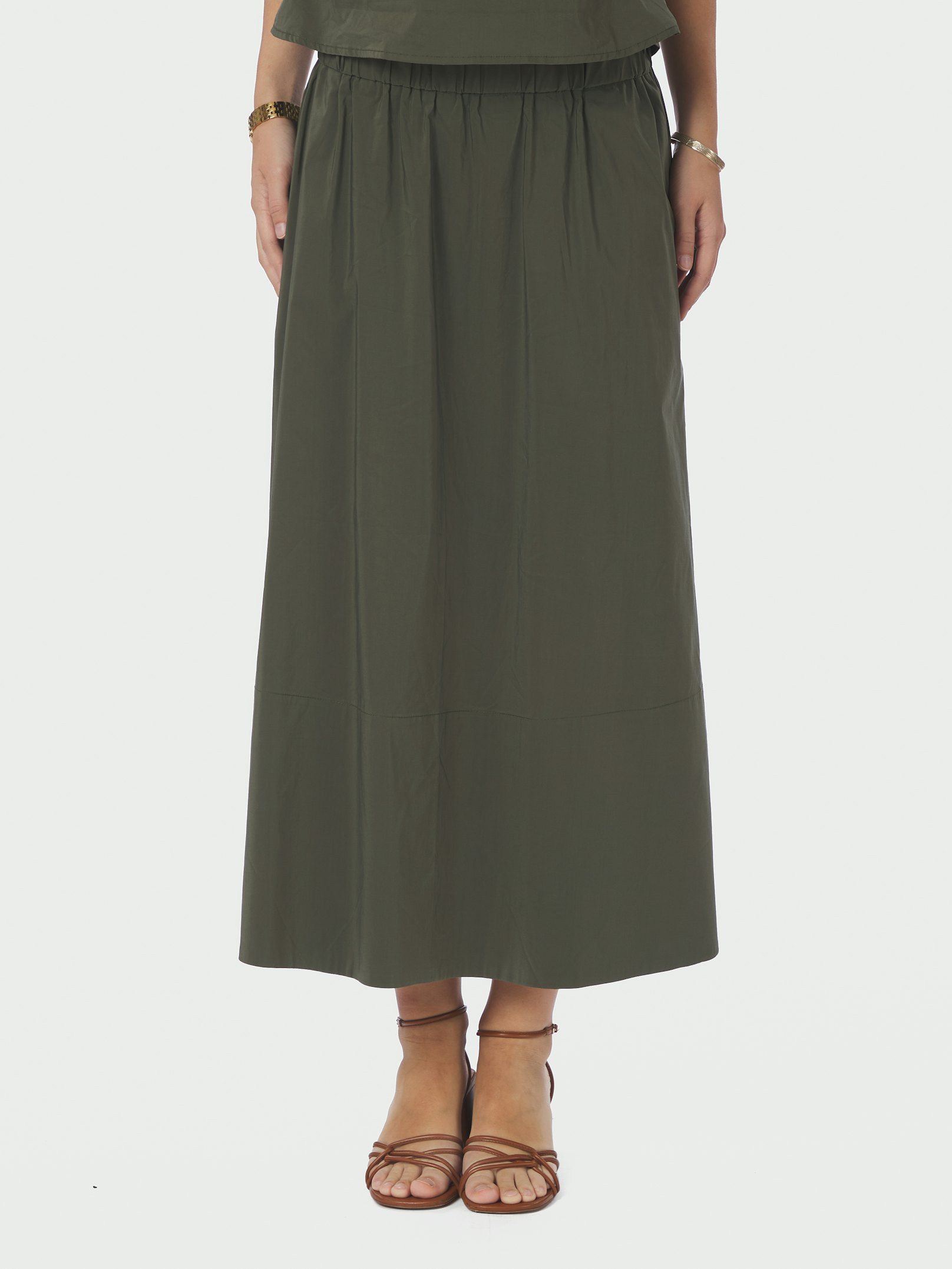 Midilång kjol i en mjuk bomullspoplin-kvalitet, med en cool hög midja och fickor fram.